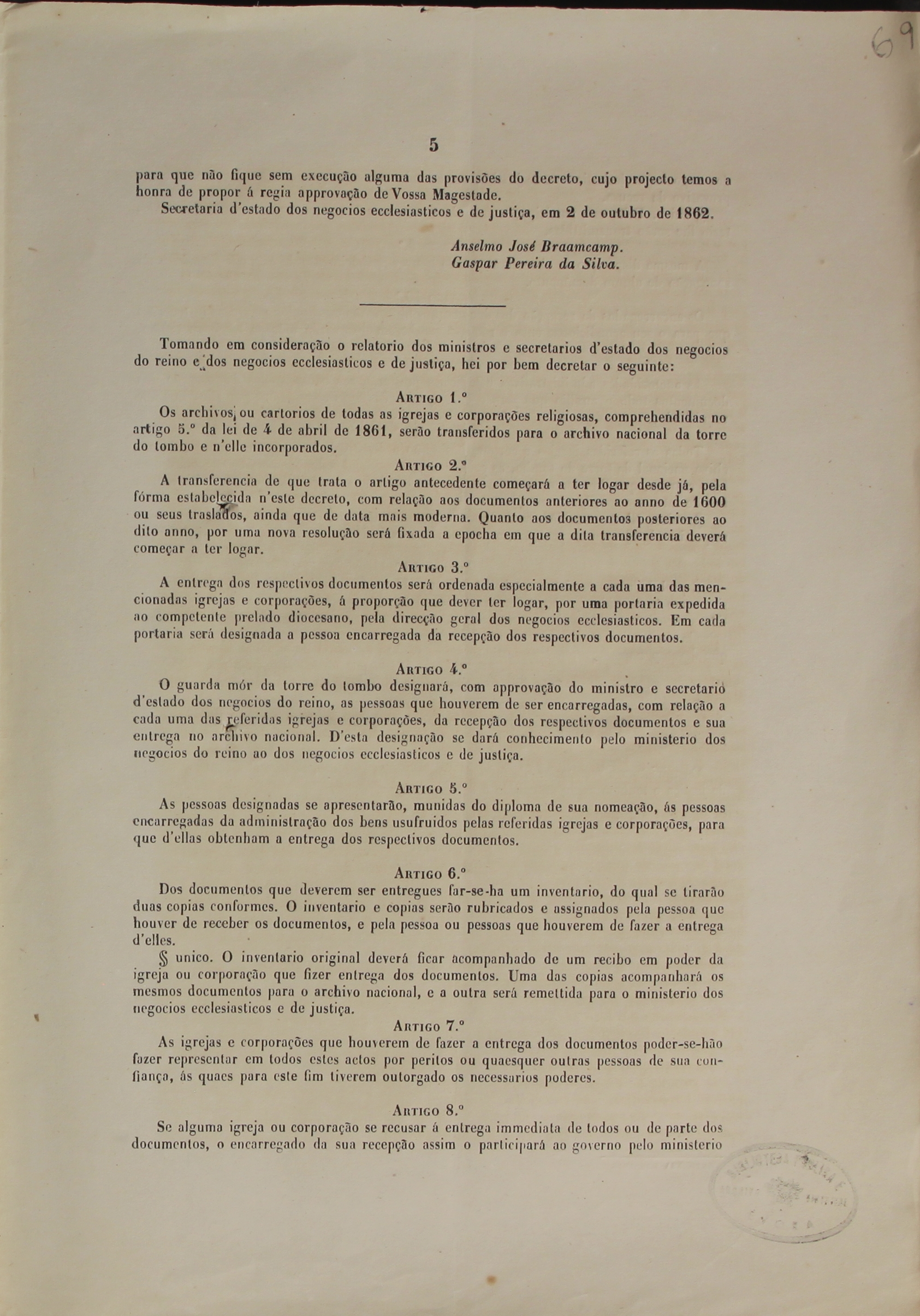Dc. 66 – 69� f. 69 Mç. 19� Cx. 4� 1862