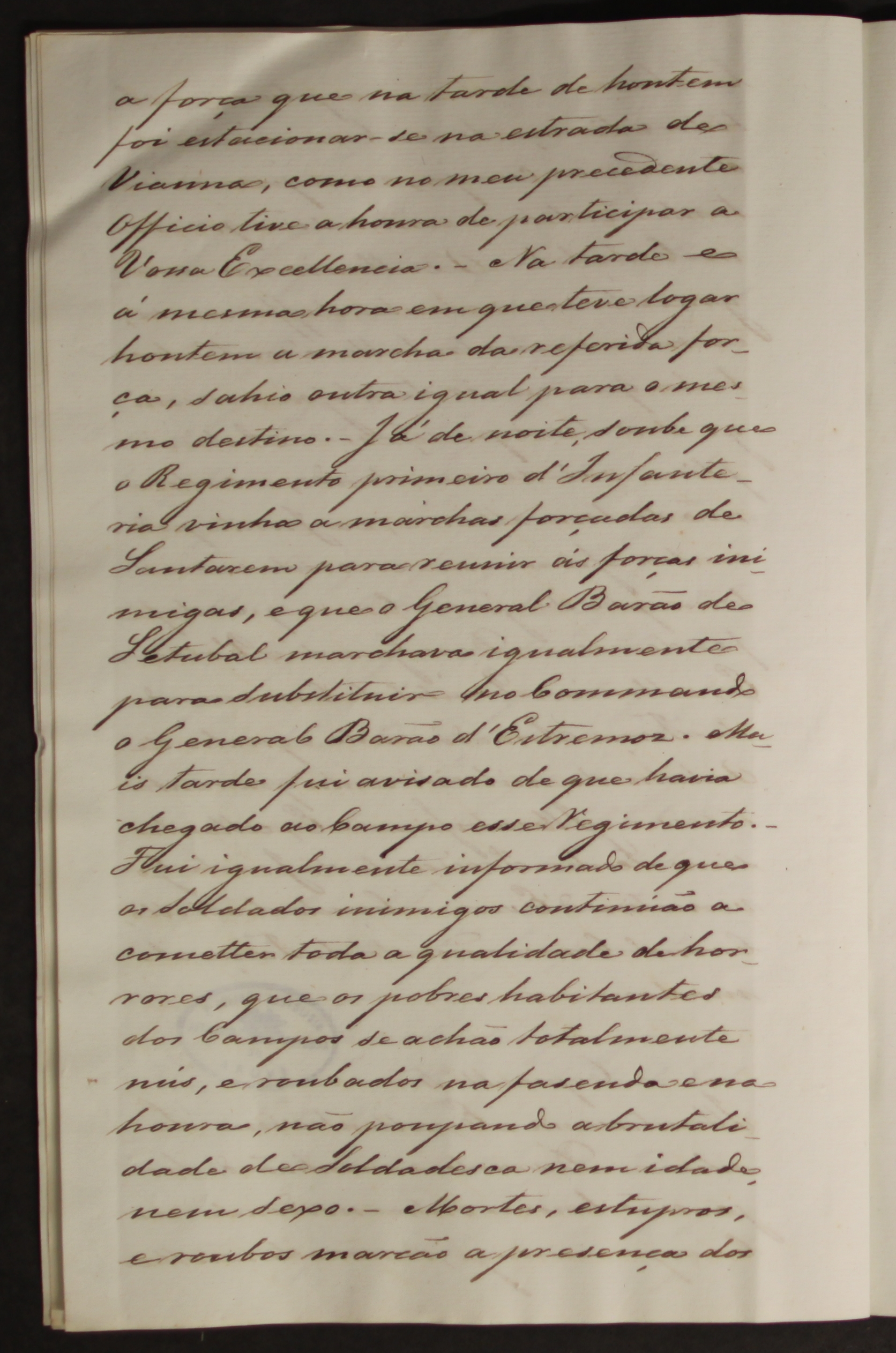 O documento em destaque é a memória da resistência por parte das forças militares eborenses à entrada das forças militares do Governo Cartista, comandadas pelo Marechal Barão de Estremoz, na cidade de Évora.