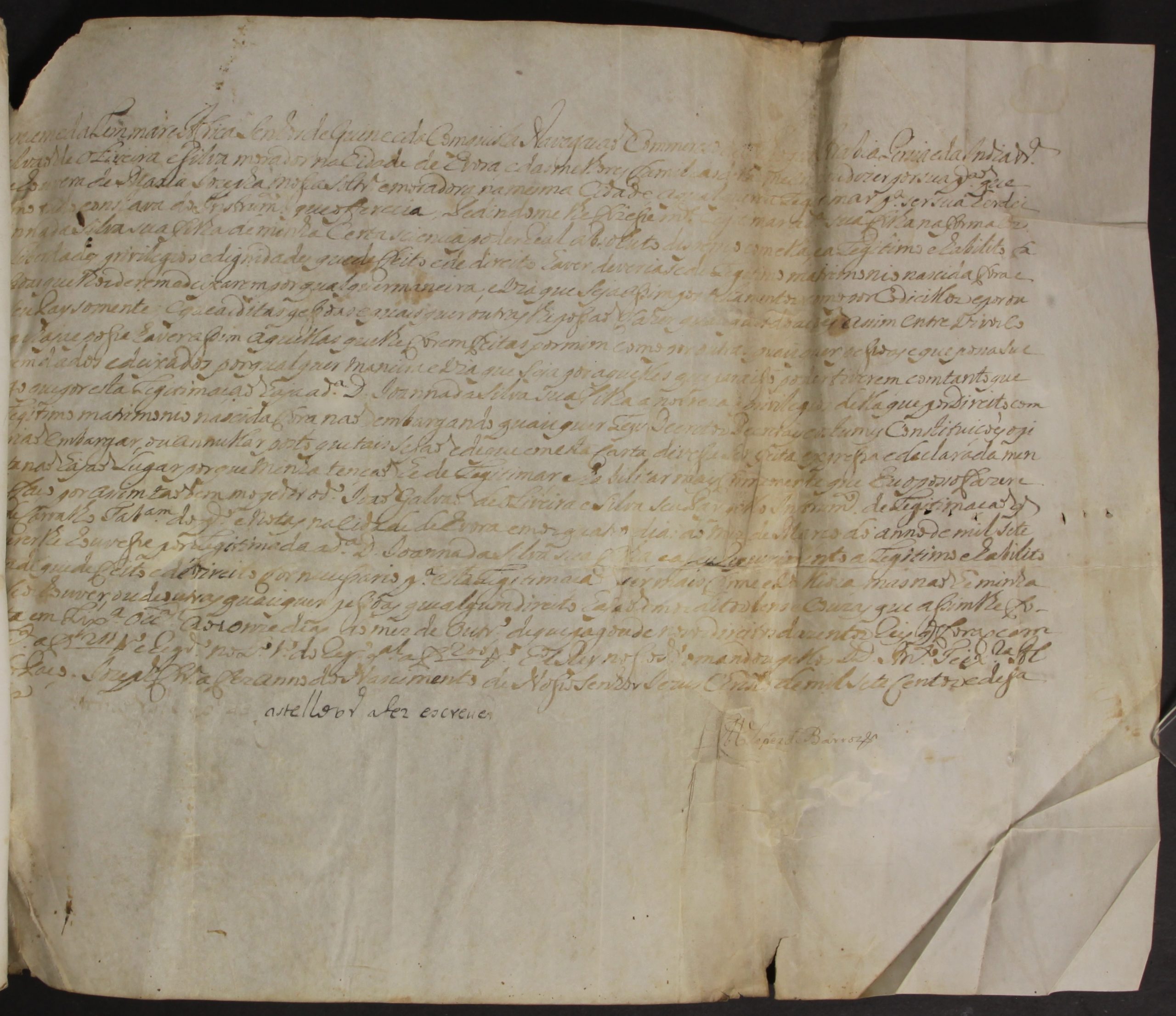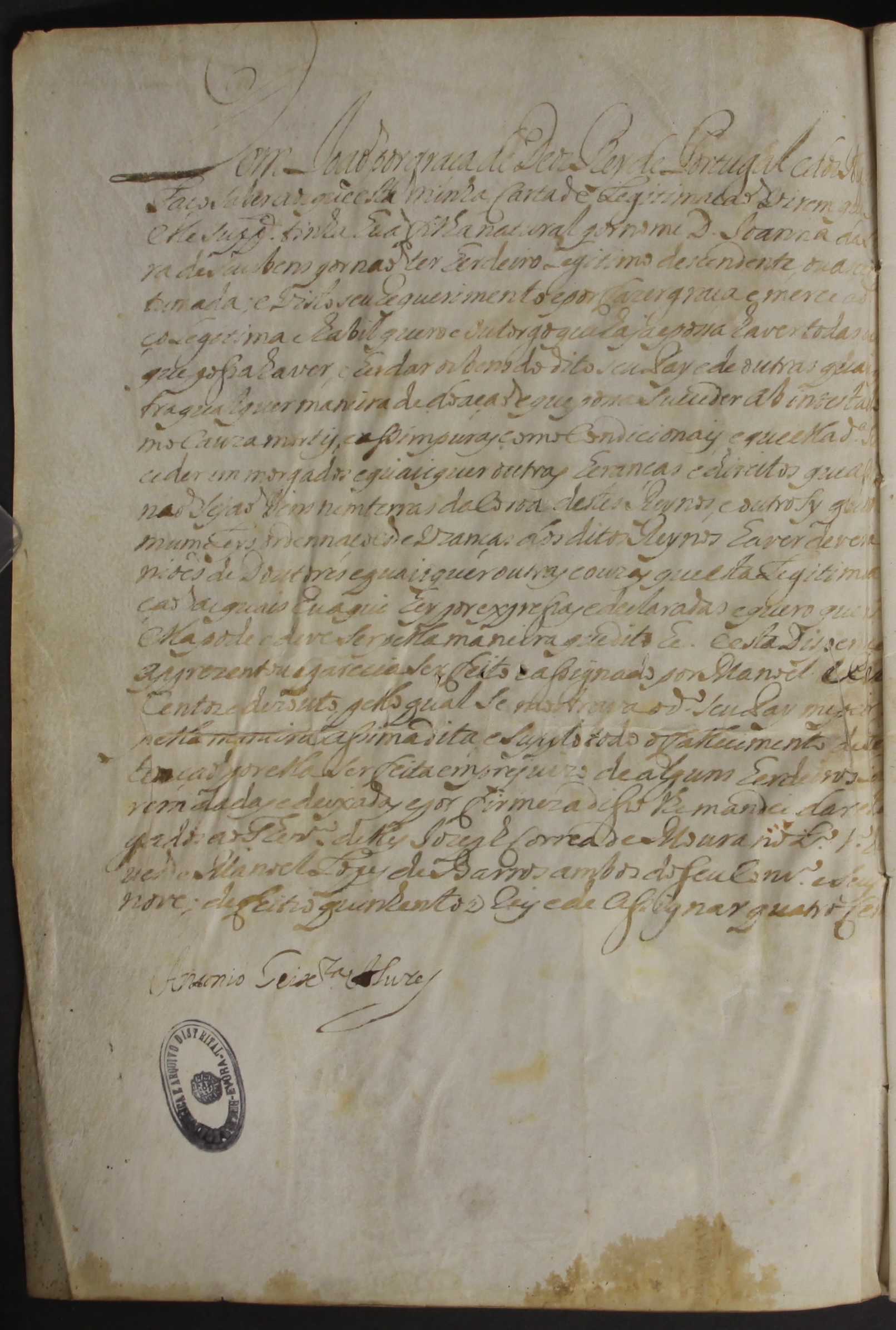 Possivelmente, nesta em concreto, a carta de mercê de legitimação que serve de encadernação do livro do cartório do tabelião Manuel Tomás da Costa foi utilizada legalmente no ato de uma escritura pública, mais precisamente quando foi lavrado o testamento de João Galvão de Oliveira e Silva, no qual a filha é herdeira. O testamento cerrado data de 7 de outubro de 1746. Pressupomos que o documento ficou no cartório de Manuel Tomás da Costa e, mais tarde, ele ou um dos seus sucessores entregou o documento para ser aproveitado como encadernação de um dos livros de notas.