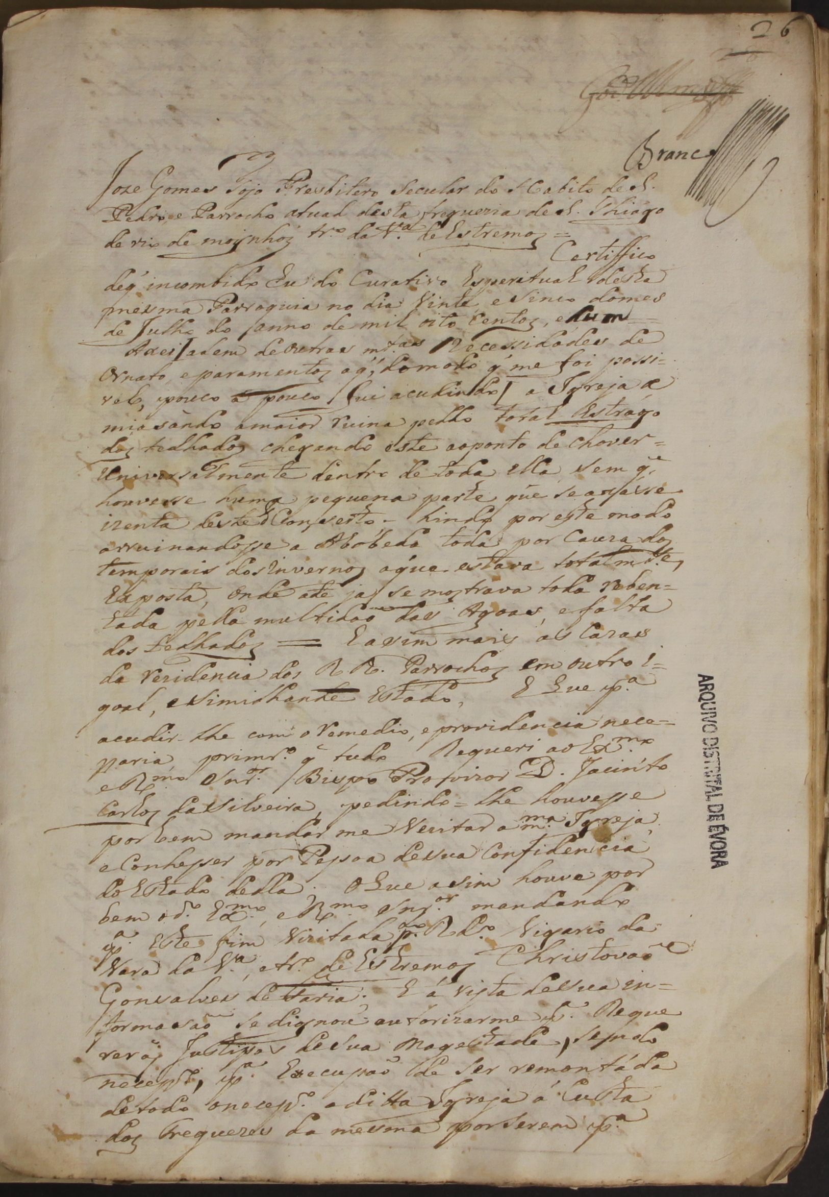 Cota: Fundo da Câmara Eclesiástica de Évora. SC: L – Livros de Visitas Pastorais. Lv. 62; Cx. 19.