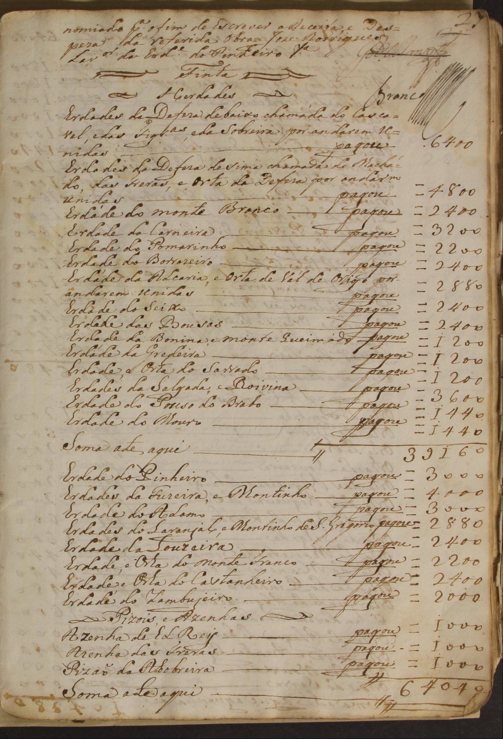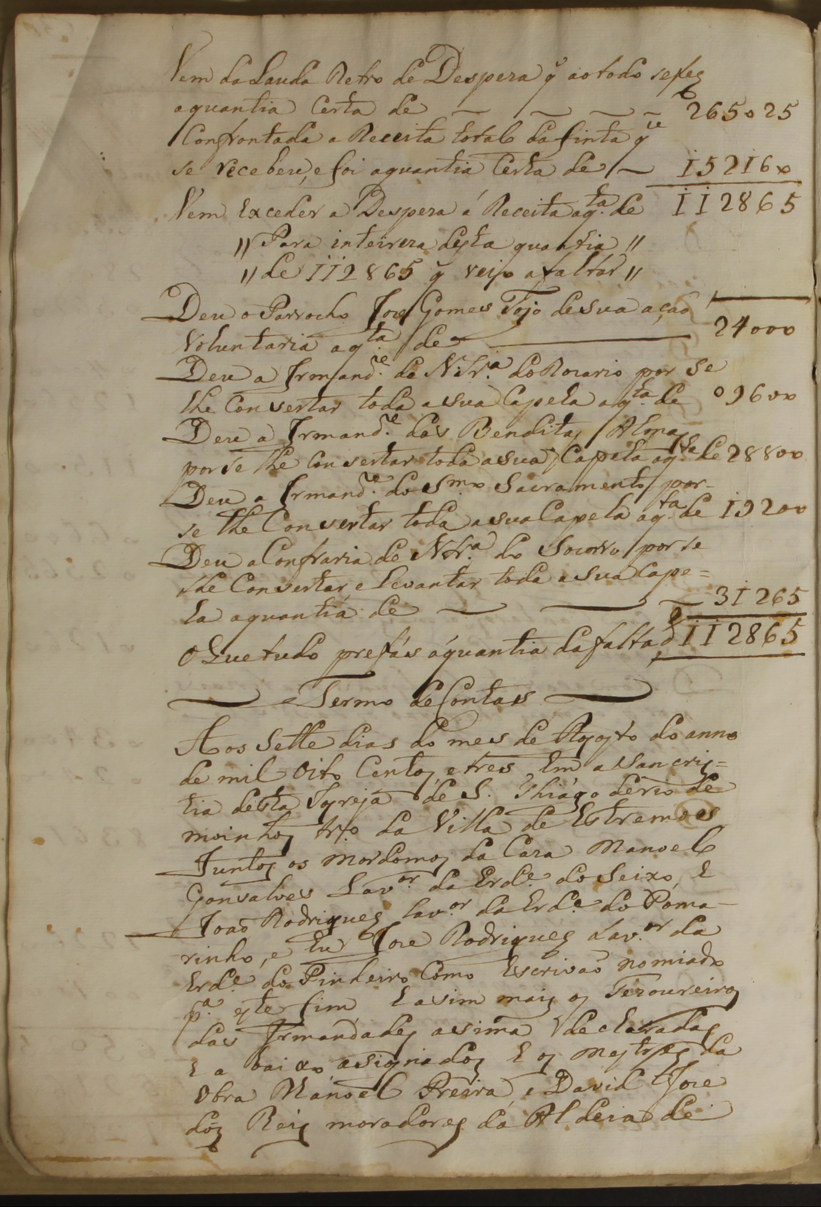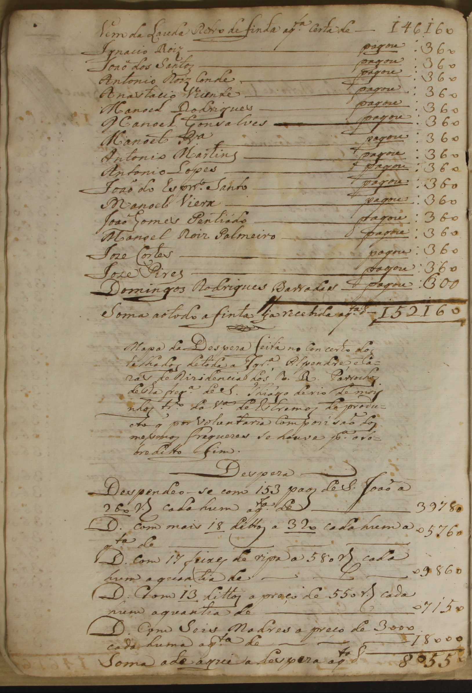 Hoje, 18 de abril, comemora-se o Dia Internacional dos Monumentos e Sítios. Porque muitos destes sítios já desapareceram, ou se encontram em ruínas, apresentamos um documento de 1803 em que constam os nomes das herdades, das hortas, dos pisões e das azenhas, bem como os de todos os caseiros simples sem fazendas, com indicação do valor desembolsado por cada um para as obras realizadas no telhado e no alpendre da Igreja e na casa de residência do pároco em Santiago de Rio de Moinhos. A coleta rendeu 152.160 réis.