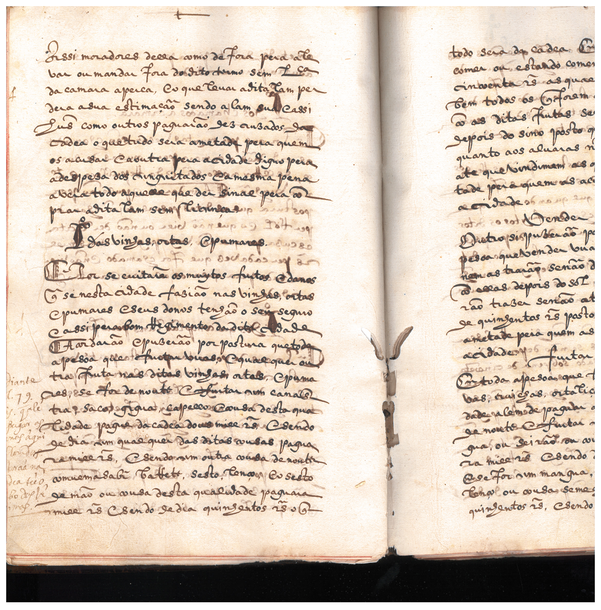 As pessoas que fossem apanhadas a roubar uva teriam de pagar coimas pesadas ou ir para a cadeia “… E por se evitarem os muitos furtos e danos que se nesta cidade fazião nas vinhas, ortas e pumares e seus donos tenhão o seu seguro e assi pera bom Regimento da dita cidade Acordarão e puzerão por postura que toda a pessoa que furtar uvas e qualquer outra fruta nas ditas vinhas, ortas e pumares, se for de noute e furtar em canastras, sacos, gigua, capello e cousa desta qualidade pague da cadea dous mill reis e sendo de dia em qualquer das ditas cousas paguara mill reis, e sendo em outra cousa de noute convem a saber barete, sesto, lenço e o sesto de mão ou cousa desta qualidade paguara mil reis e sendo de dia quinhentos reis o que todo sera da cadea…”, era proibido caçar nas vinhas “…E primeiramente mandamos e defendemos que qualquer pessoa de qualquer estado ou condição que seja não cace em nenhumas vinhas do primeiro dia de março até ao primeiro de novembro em que achamos que as vinhas são aproveitadas e recebem dano entrando nelas…”, não era permitido que o gado ou as bestas andassem dentro das vinhas “…nenhuma besta não ande em vinha alguma salvo na de seu dono a qual trará presa per uma corda e asi poderão andar nas vinhas que já foram postas em panasqueiras e desaproveitadas…”, podendo os proprietários matar o gado que lá encontrassem sem serem multados.