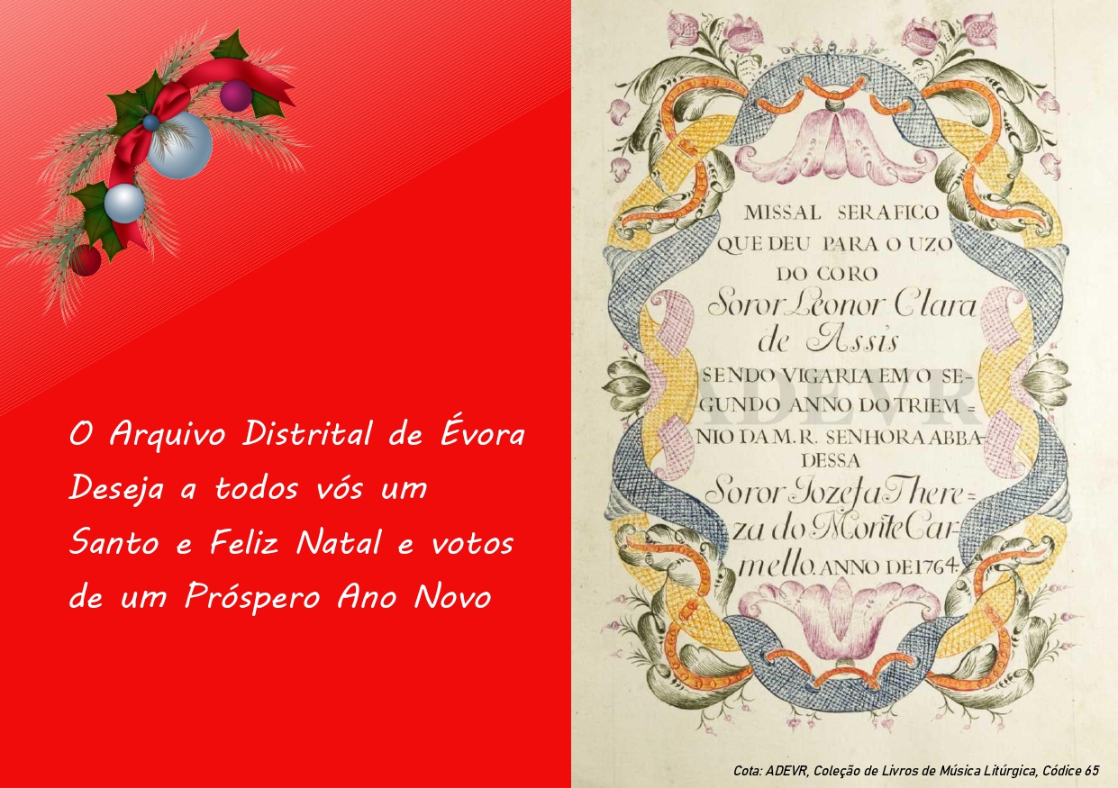O Arquivo Distrital de Évora deseja a todos vós um Santo e Feliz Natal e votos de um Próspero Ano Novo.