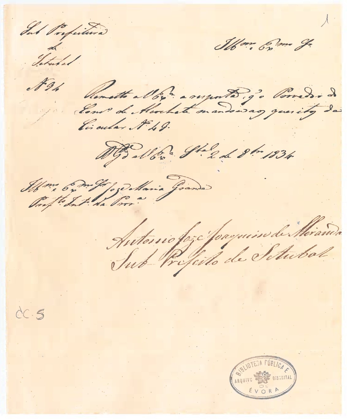 Cota Provisória: F: Prefeitura da Província do Alentejo, SR: 001 – Correspondência, Cx. 1, dc. 00005