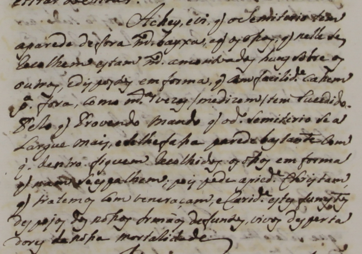 Nos livros de visitas pastorais realizadas no Arcebispado de Évora encontram-se registos quanto à preocupação que os visitadores tinham em relação ao estado das covas e dos cemitérios, atendendo a que muitas vezes eram levados pelas ruas, pelos cães e porcos, pedaços dos corpos dos defuntos.