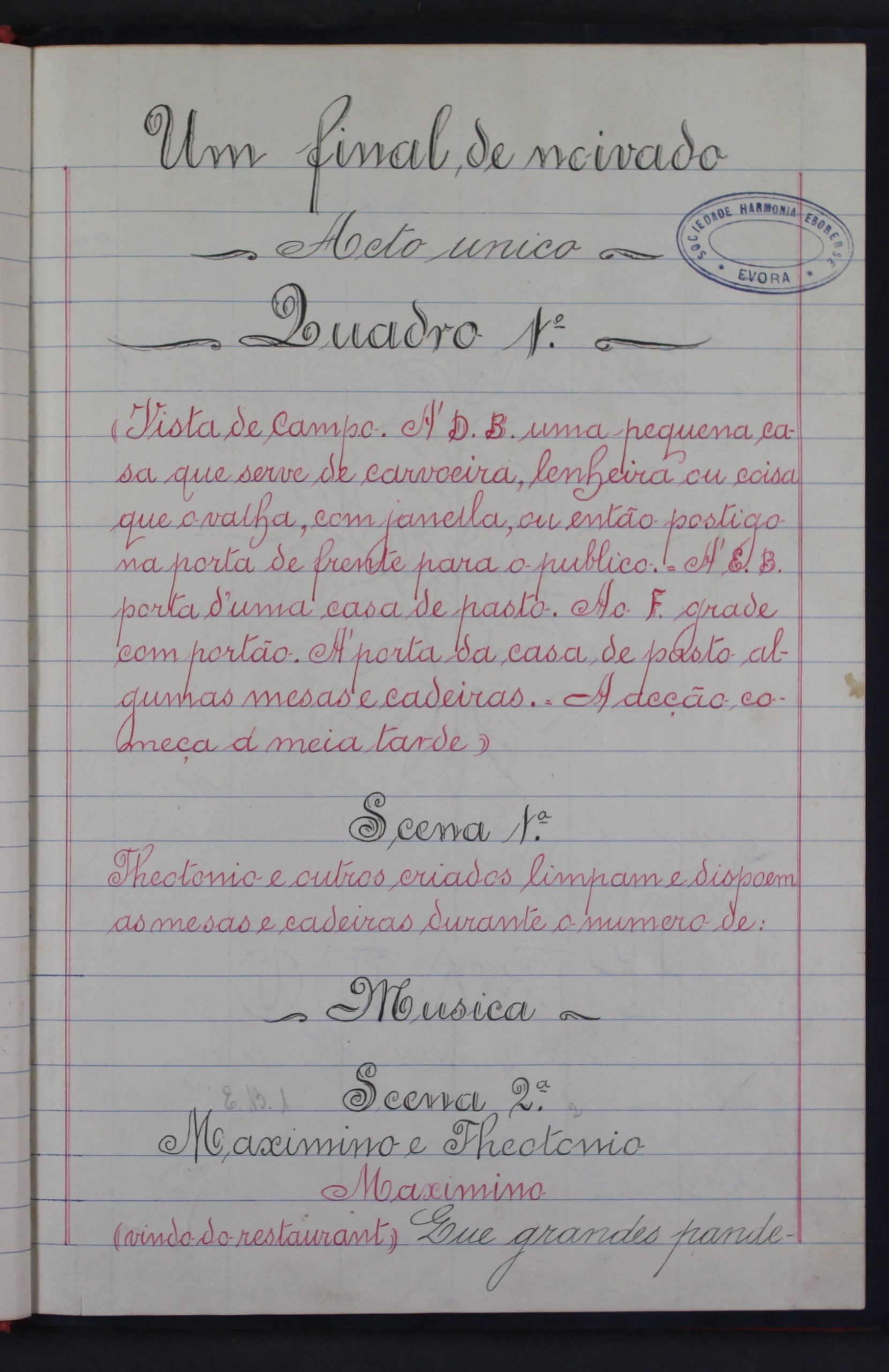 Cota: F: Sociedade Harmonia Eborense, SC: F- Atividades culturais, lúdicas e desportivas, SR: 001-Teatro/música, SSR: 004- Teatro, operetas e zarzuelas, Cx. 63, Ui:8