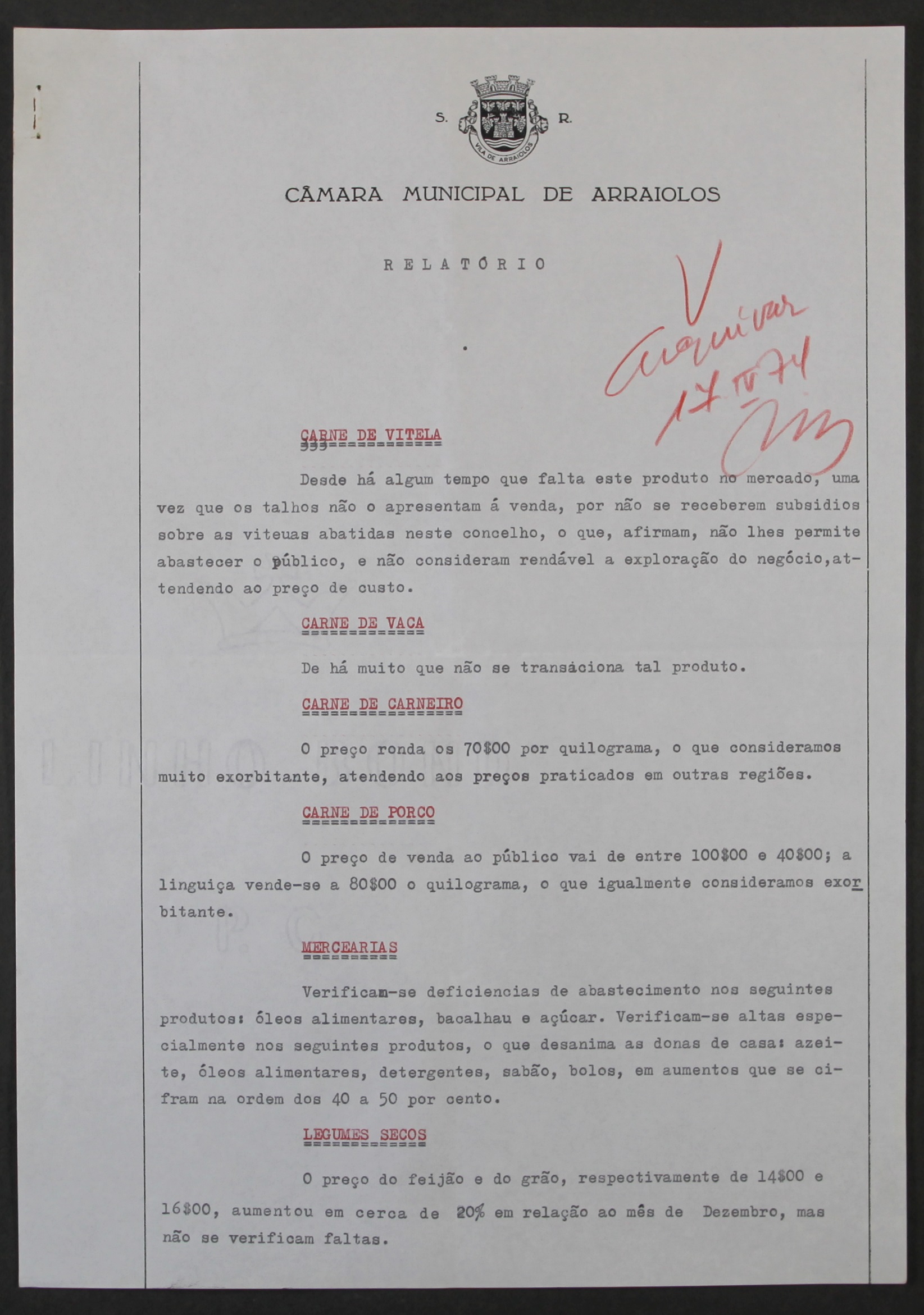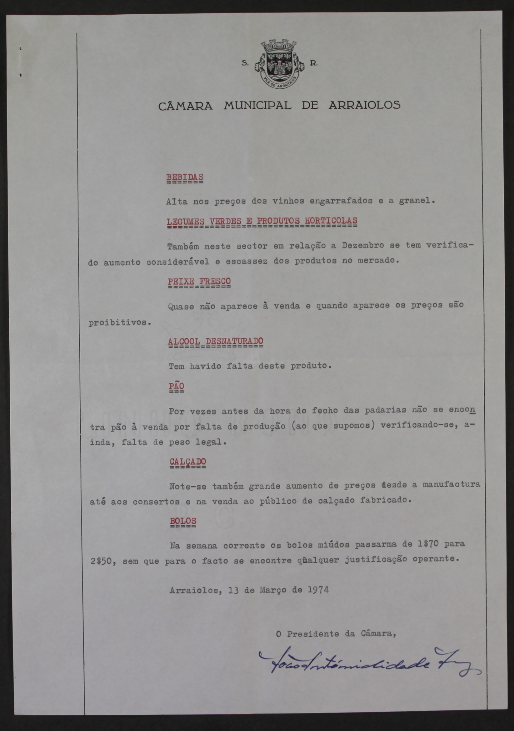 No ano em que se comemoram 50 anos da Revolução de 25 de Abril de 1974 e tendo em conta a conjuntura dos últimos anos no que respeita à inflação, divulgamos um Relatório assinado pelo Presidente da Câmara Municipal de Arraiolos e datado de 13 de março de 1974, em que dá conta da carestia de produtos e da elevada inflação que se fazia sentir, o que agravava em muito o custo de vida.