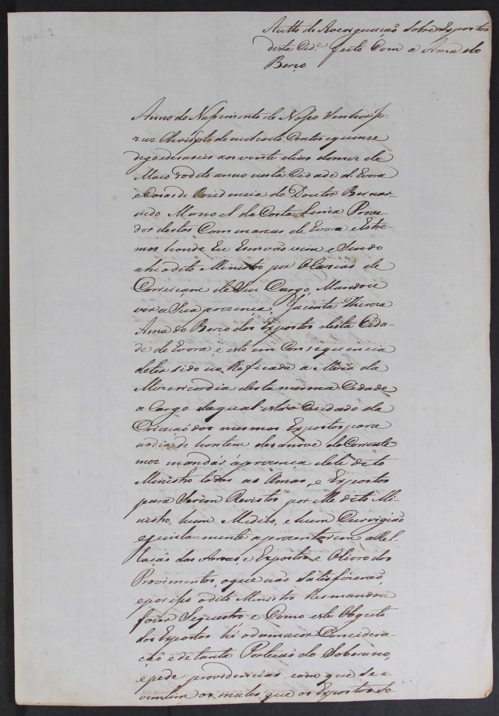 Os documentos que destacamos pertencem a um conjunto de documentos, que se encontram no Fundo da Provedoria das Comarcas de Évora e Estremoz, sobre a Casa do Berço da cidade de Évora e a criação dos expostos.