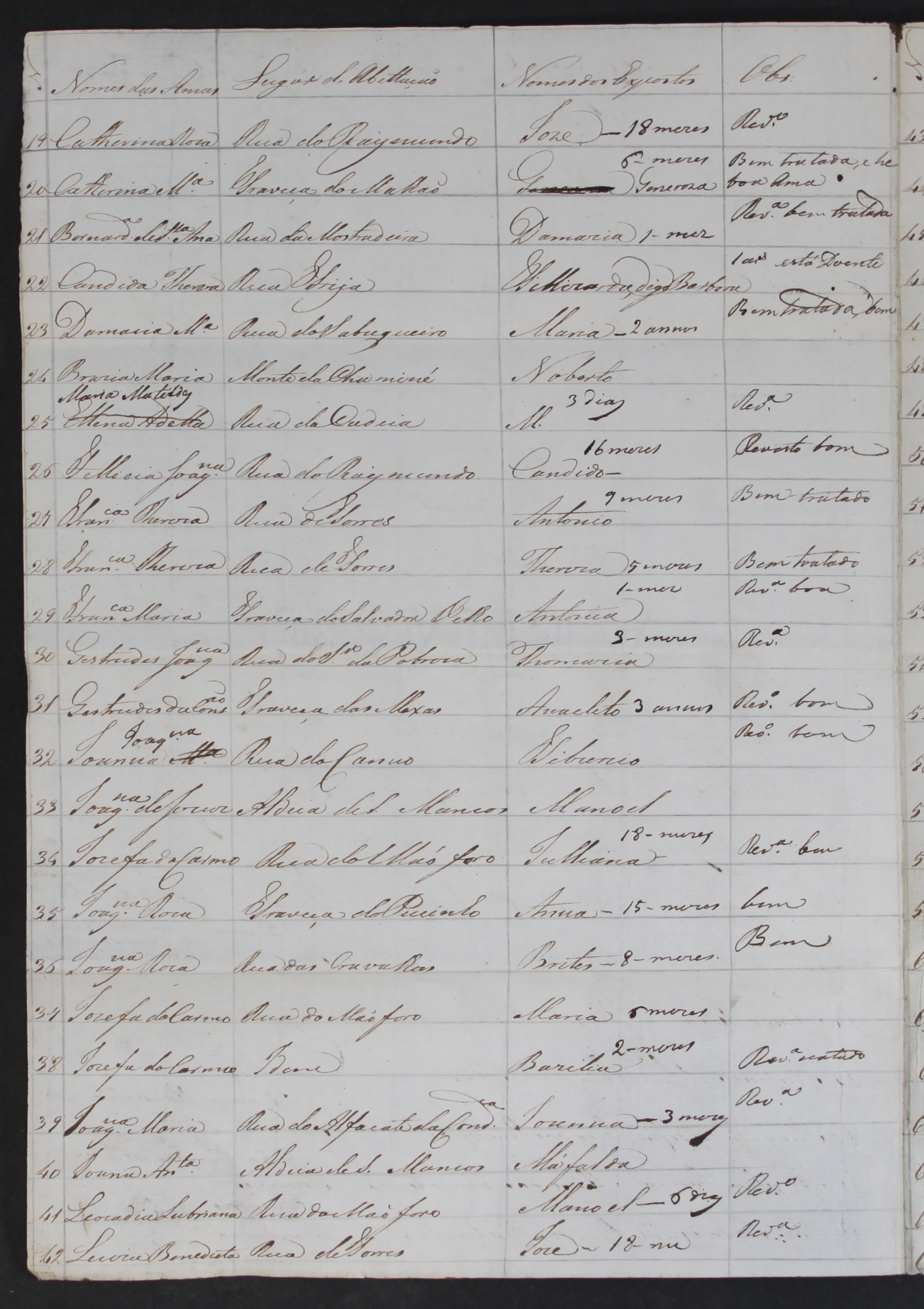 Após a afixação de edital para nomeação de uma nova ama para a Casa do Berço ou da Roda, que fosse “mulher casada e de bom leite” para alimentar os expostos até que fossem entregues às amas que os haviam de criar, procedeu à exoneração de Jacinta Teresa do cargo de Ama do Berço e nomeou para o lugar, após avaliação dos peritos competentes, Doroteia de Jesus, casada com Inácio Gomes.