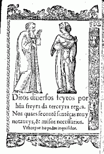 O livro que produziu Ditos da Freira, publicado cerca de 1555, sem indicação do autor, editor ou data, encontra-se dividida em duas partes, a primeira composta de aforismos e a segunda de formas diversificadas, tais como prosa, vilhancico, sonetos, cantigas, romances, sentenças e avisos. Foi a primeiro obra literária original publicada por uma mulher portuguesa e a primeira que teve um livro impresso com caracteres de imprensa. O livro teve duas edições, ambas anónimas no século XVI.