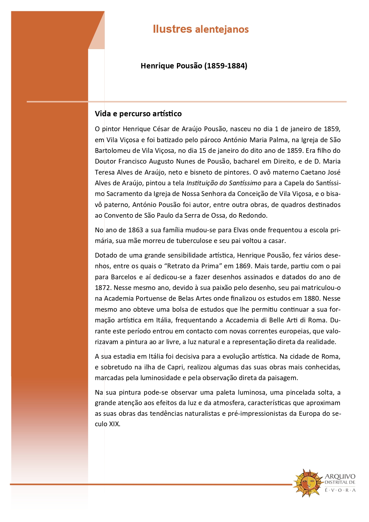 ALENTEJANOS ILUSTRES – Henrique Pousão